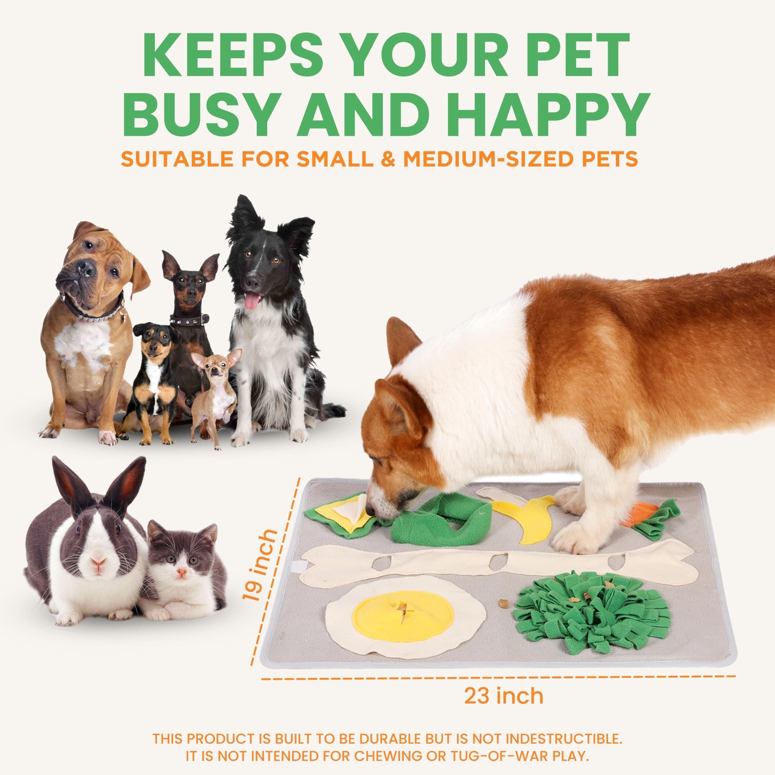 2.SAFE SLOW FEEDING SOLUTION: Your puppy will enjoy searching for treats on this colorful veggie patch & snuffle mat for dogs small. This foraging mat for dogs adds fun to playtime and, helps slow down feeding & keeps your pup safe.