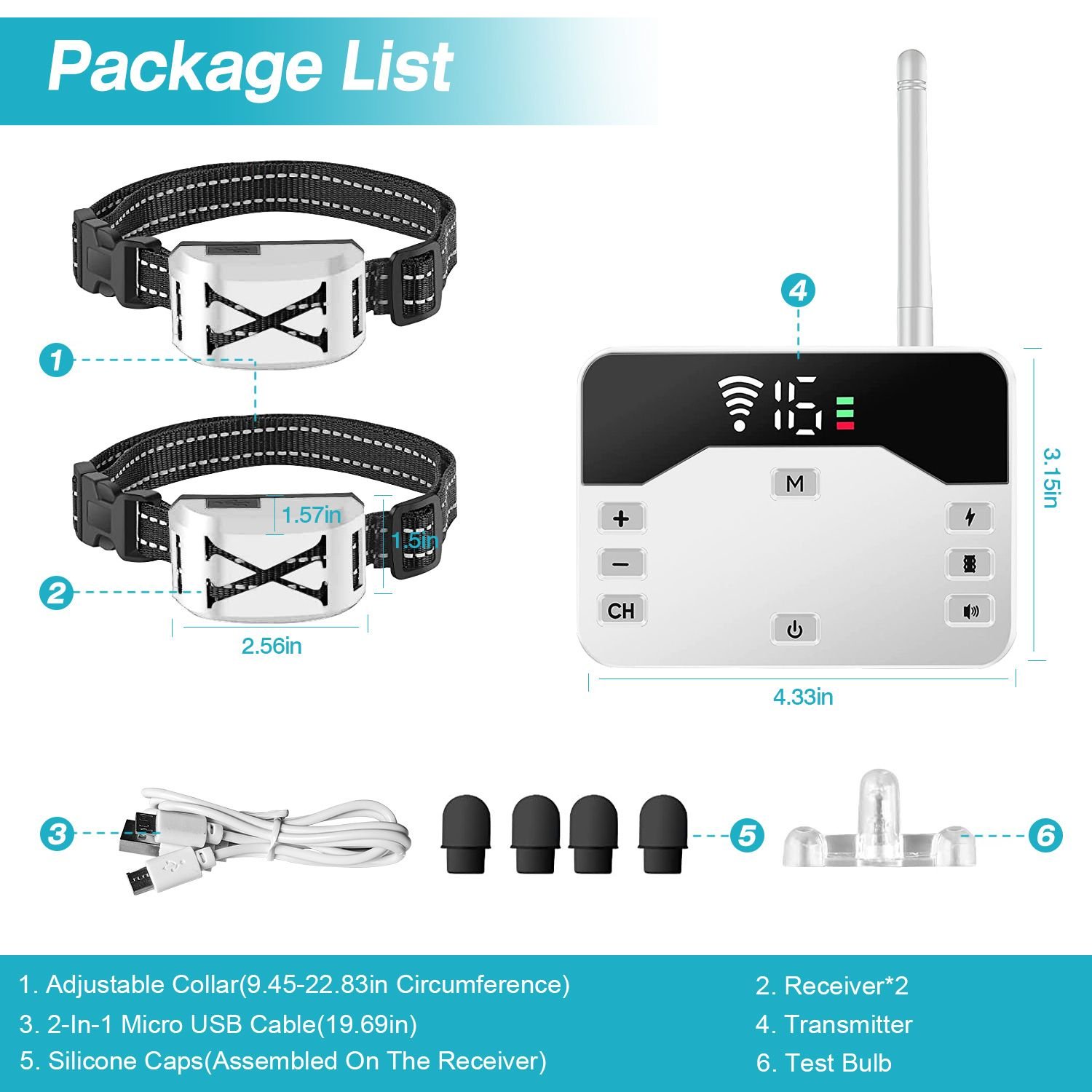 *Adjustable & Reflective Collar*:The collar can be adjusted from 9.45in to 22.83in to fit most sizes of 6-month+year old dogs between 15-120LBS. Reflected strips on the collar make people see your dogs clearly even at night which effectively keep your dog safe.